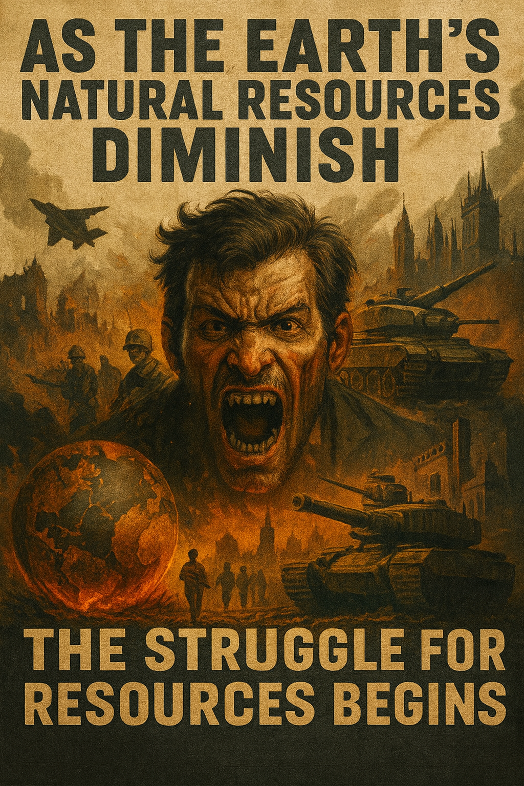 As the Earth’s warehouse of natural resources diminishes it is inevitable that global societal relationships will become strained. The truth is, that beneath the veneer of human civility lies an ancient instinct: when resources dwindle, competition turns ruthless. History shows that every great conflict—from imperial conquests to modern wars—was preceded by a scramble for essentials.